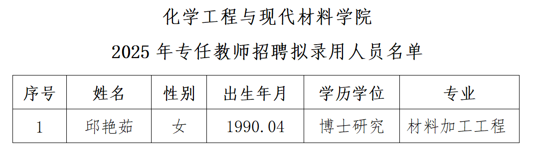 根据《best365中国官网人才招聘与管理工作实施办法》及《best365中国官方网站2025年专任教师招聘考试工作安排》,通过资格审查、试讲、面试等环节考察,经7月31日公司党政联席会议研究决定,拟录用邱艳茹同志,现予以公示。