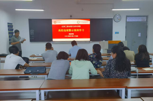 为深入贯彻落实习近平总书记关于教育的重要论述,进一步加强师德师风建设,弘扬新时代教育家精神,5月25日下午,化学专业系主任孙强强副教授组织全系教师开展师德师风专题警示教育。