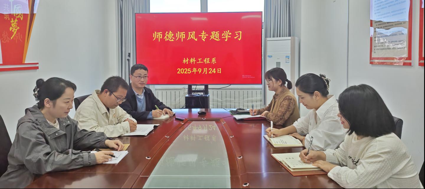 为深入贯彻教育强国战略,落实教师队伍高素质专业化建设要求,9月24日,材料工程系在丹江校区4-316教室开展师德师风专题学习,由系主任杨超普副教授主持,全体教师参加。